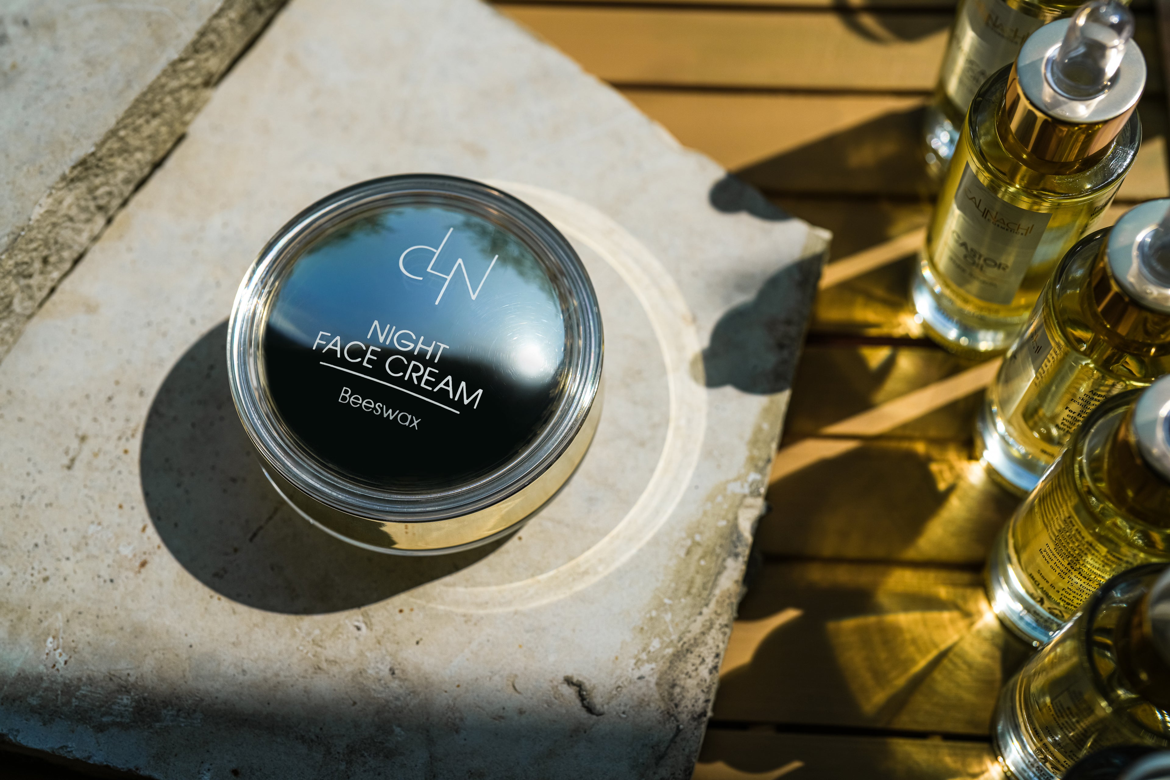 During the night, the skin shifts into intensive repair mode. The CALINACHI Night Face Cream combines a bio-regenerative complex of natural oils, marine DNA, Centella Asiatica, and hyaluronic acid to: